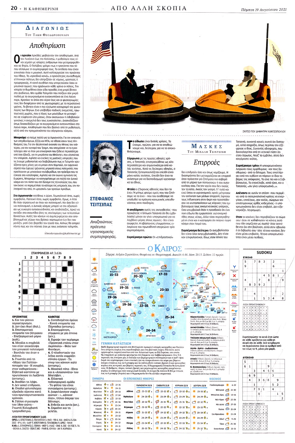 ΚΑΘΗΜΕΡΙΝΗ - 19 Αυγούστου 2021