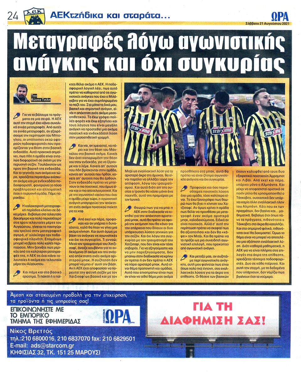 ΑΘΛΗΤΙΚΗ ΩΡΑ ΤΩΝ ΣΠΟΡ - 21 Αυγούστου 2021