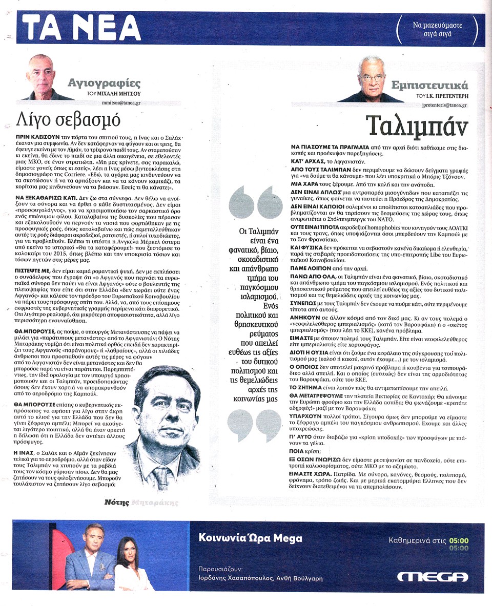 ΤΑ ΝΕΑ - 23 Αυγούστου 2021