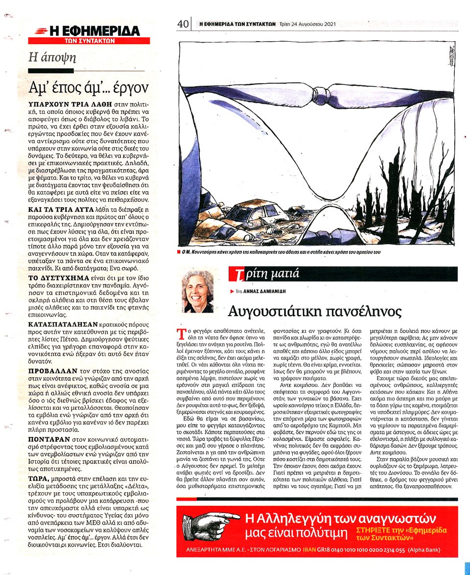 Η ΕΦΗΜΕΡΙΔΑ ΤΩΝ ΣΥΝΤΑΚΤΩΝ - 24 Αυγούστου 2021
