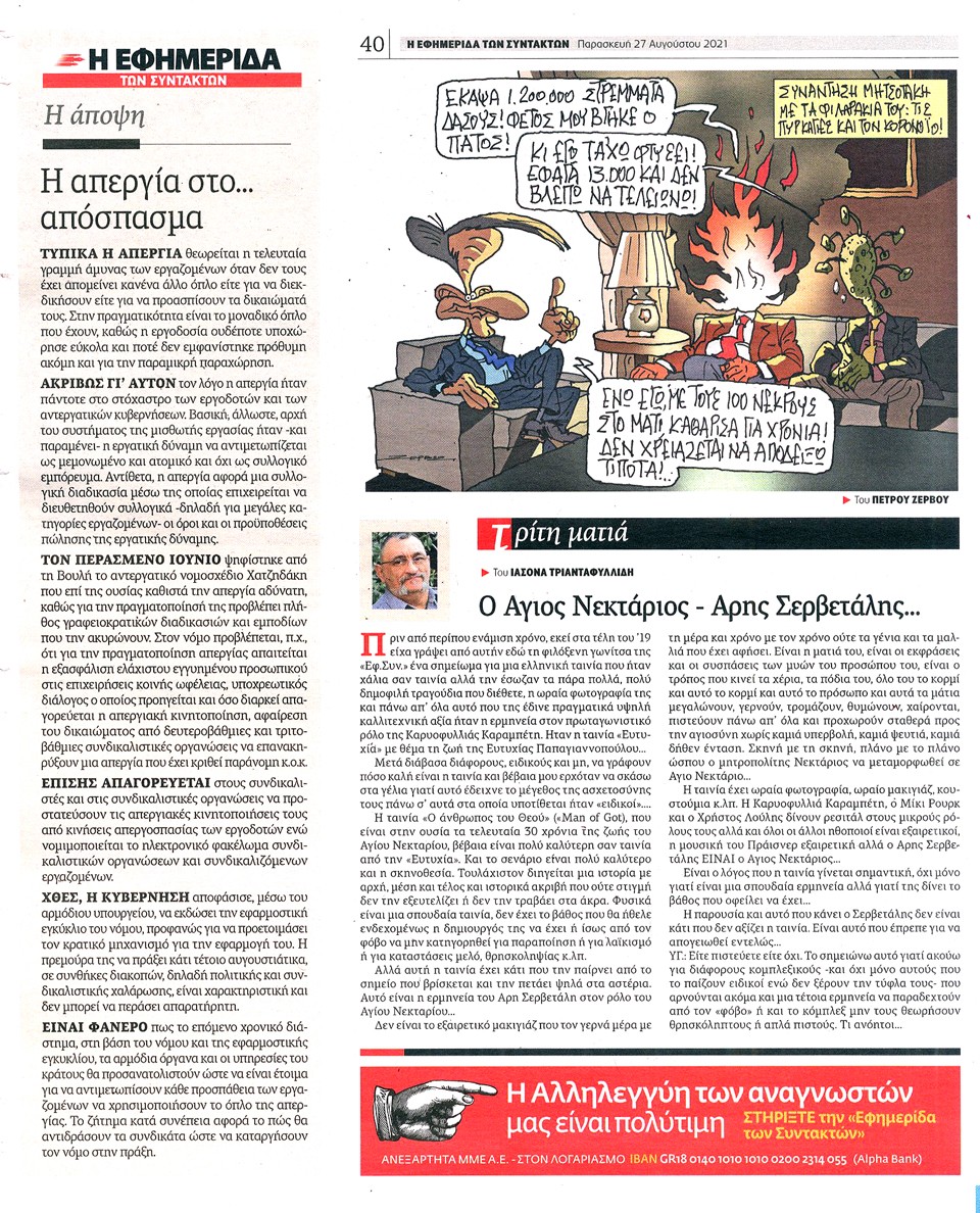 Η ΕΦΗΜΕΡΙΔΑ ΤΩΝ ΣΥΝΤΑΚΤΩΝ - 27 Αυγούστου 2021