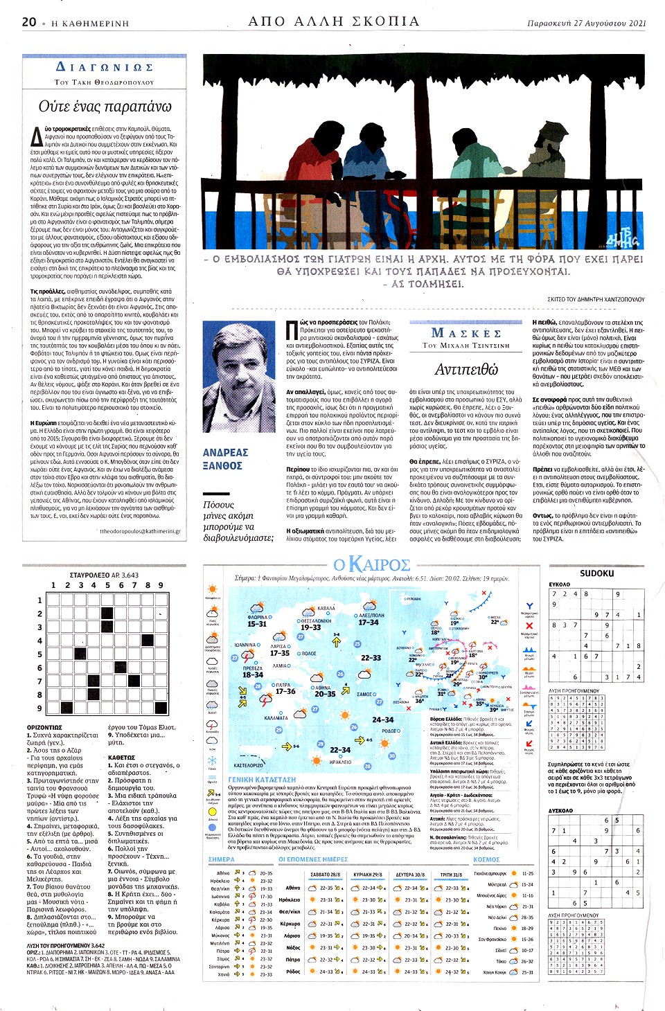 ΚΑΘΗΜΕΡΙΝΗ - 27 Αυγούστου 2021