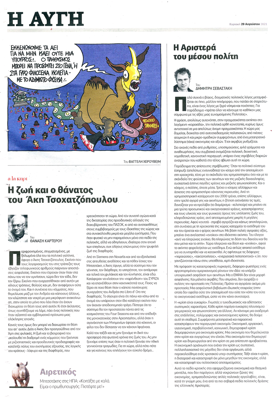 Η ΑΥΓΗ ΤΗΣ ΚΥΡΙΑΚΗΣ - 29 Αυγούστου 2021