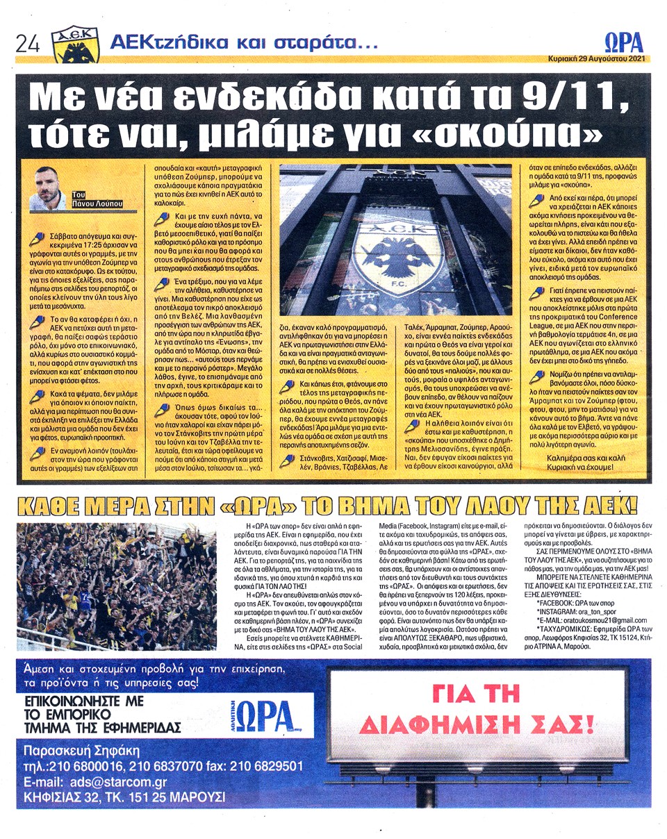 ΑΘΛΗΤΙΚΗ ΩΡΑ ΤΩΝ ΣΠΟΡ - 29 Αυγούστου 2021