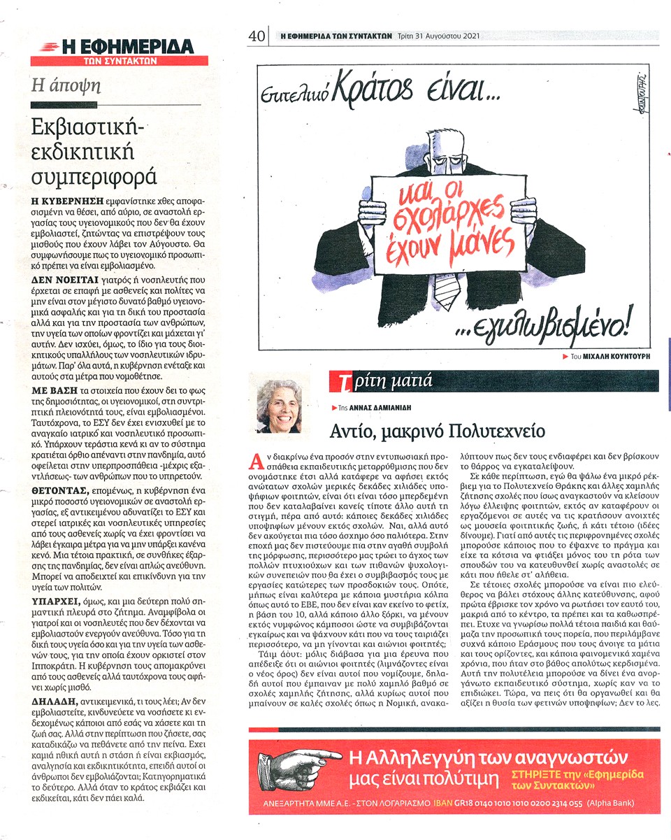 Η ΕΦΗΜΕΡΙΔΑ ΤΩΝ ΣΥΝΤΑΚΤΩΝ - 31 Αυγούστου 2021