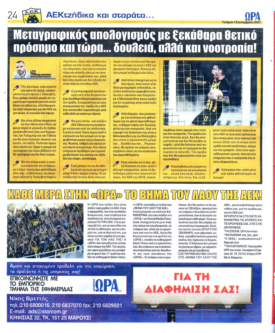 ΑΘΛΗΤΙΚΗ ΩΡΑ ΤΩΝ ΣΠΟΡ - 1 Σεπτεμβρίου 2021