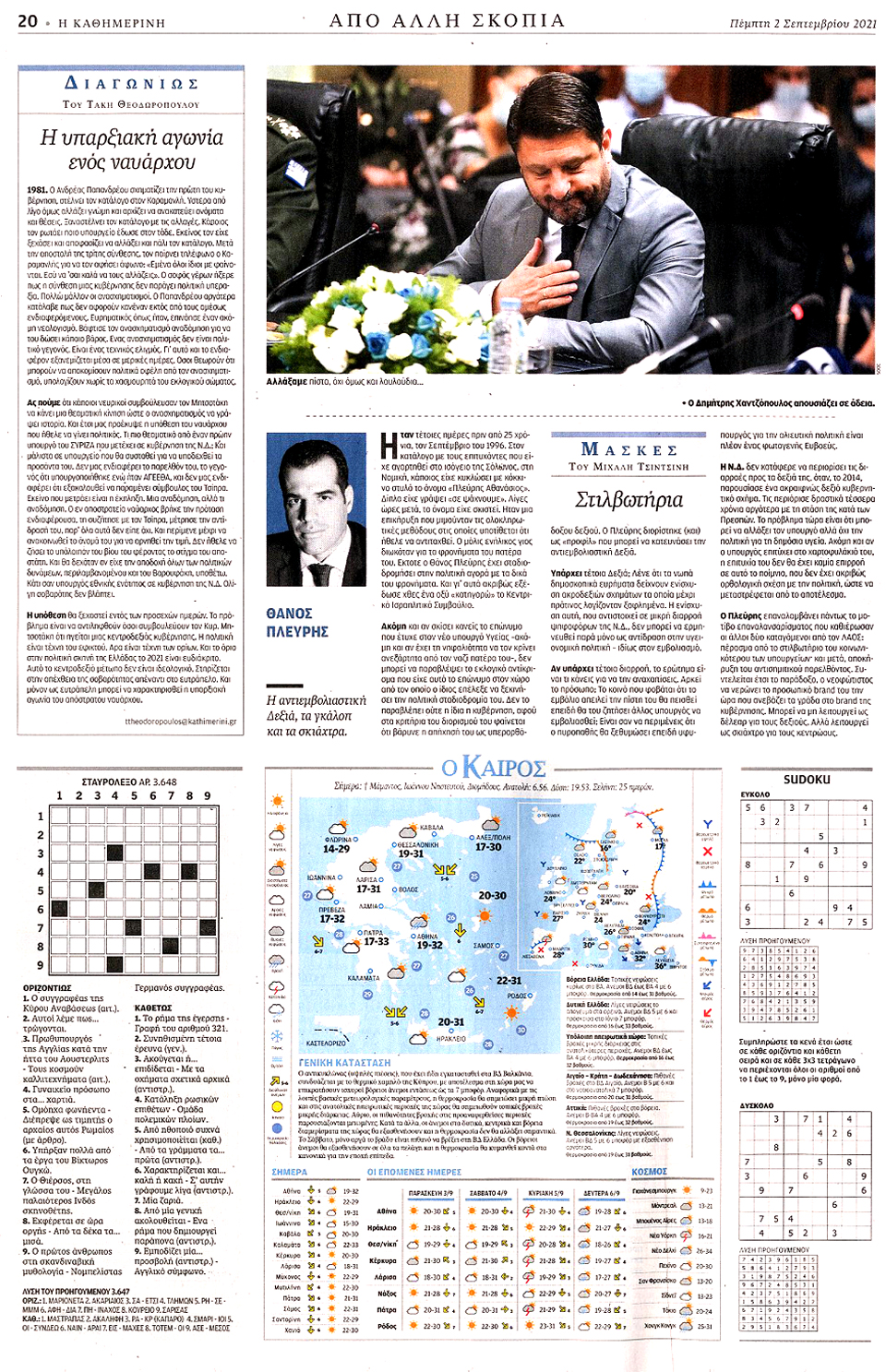 ΚΑΘΗΜΕΡΙΝΗ - 2 Σεπτεμβρίου 2021