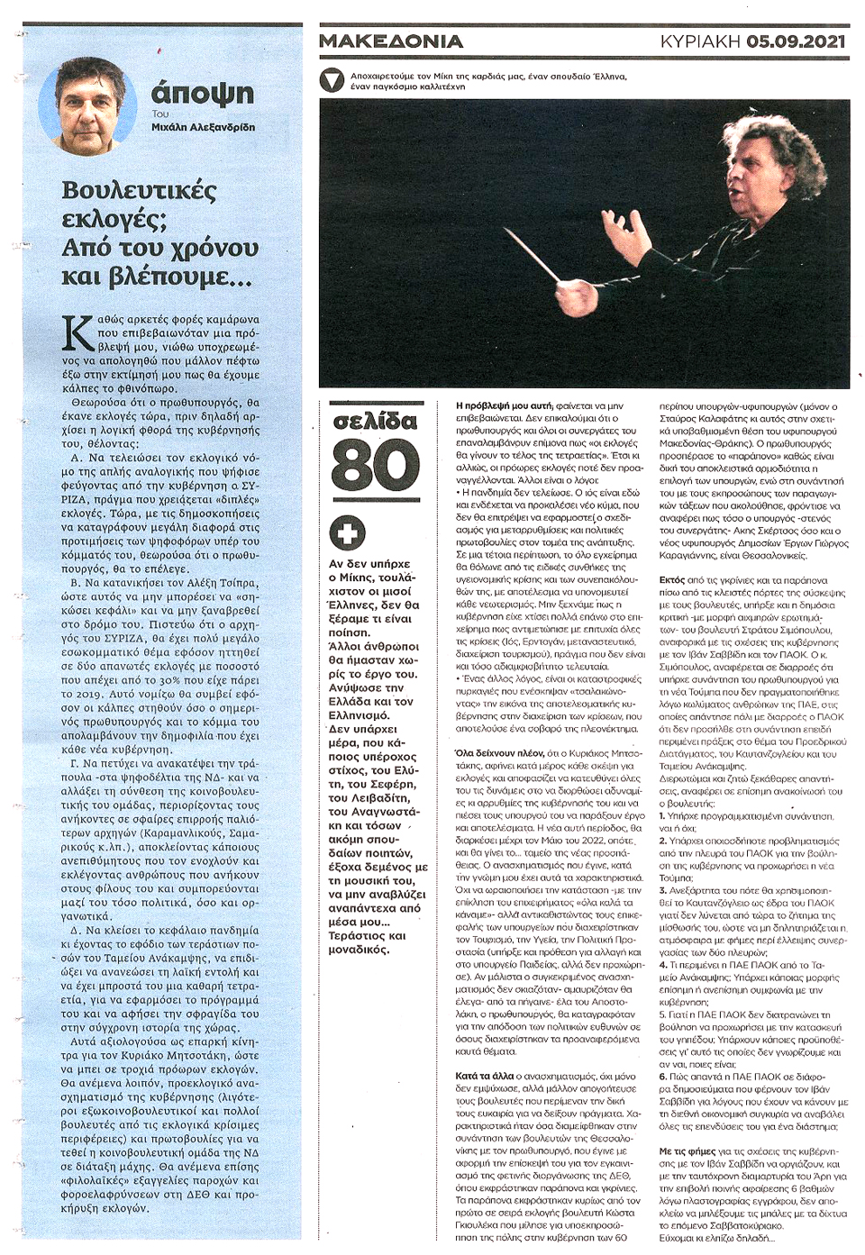 ΜΑΚΕΔΟΝΙΑ ΤΗΣ ΚΥΡΙΑΚΗΣ - 5 Σεπτεμβρίου 2021