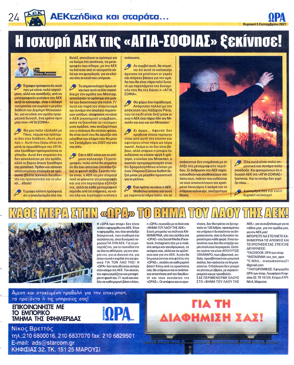 ΑΘΛΗΤΙΚΗ ΩΡΑ ΤΩΝ ΣΠΟΡ - 5 Σεπτεμβρίου 2021