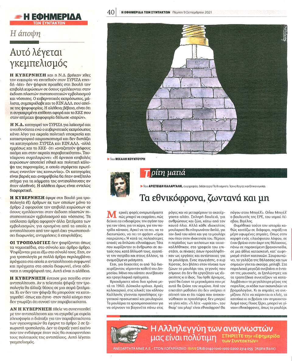 Η ΕΦΗΜΕΡΙΔΑ ΤΩΝ ΣΥΝΤΑΚΤΩΝ - 9 Σεπτεμβρίου 2021