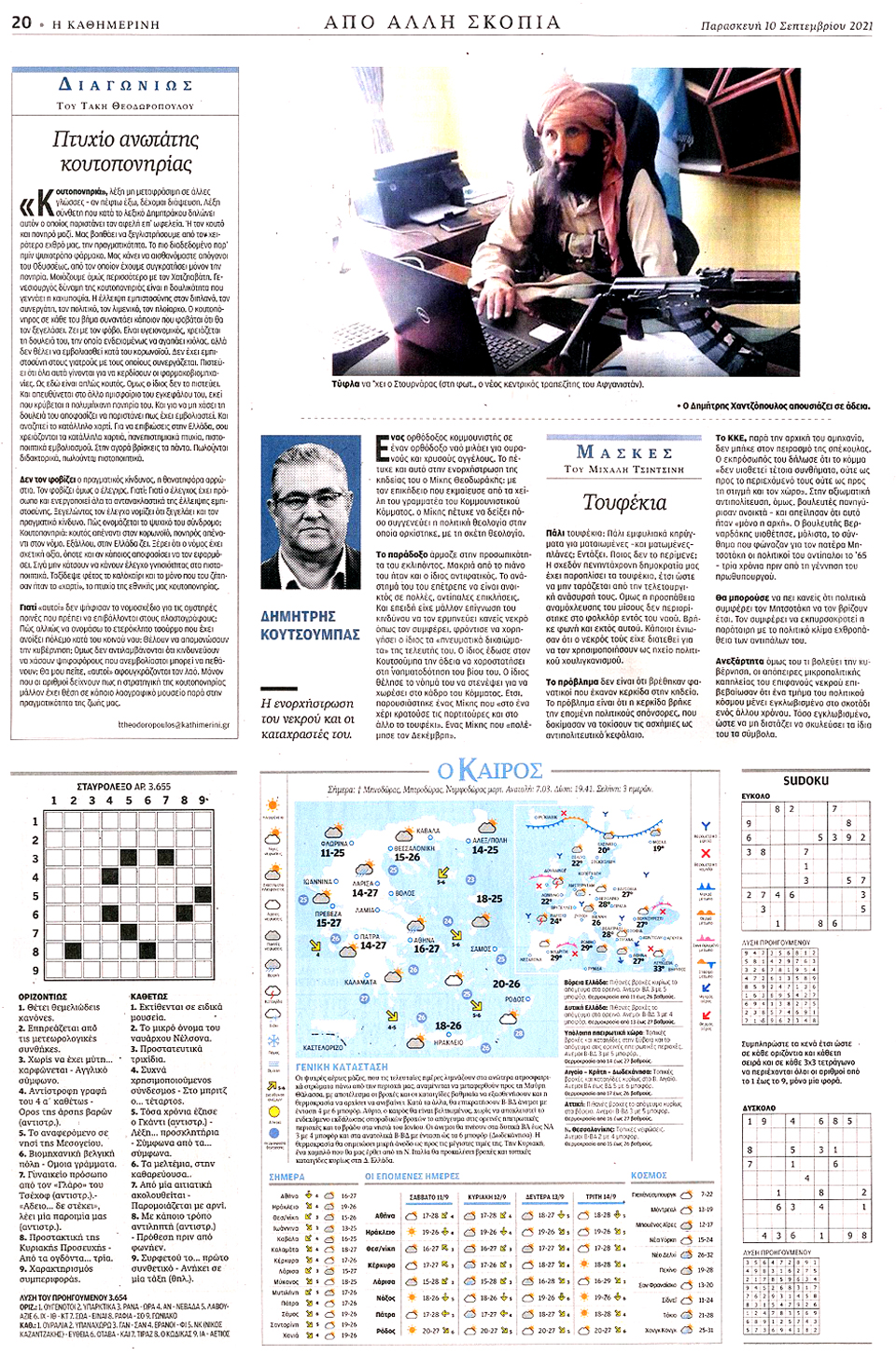 ΚΑΘΗΜΕΡΙΝΗ - 10 Σεπτεμβρίου 2021