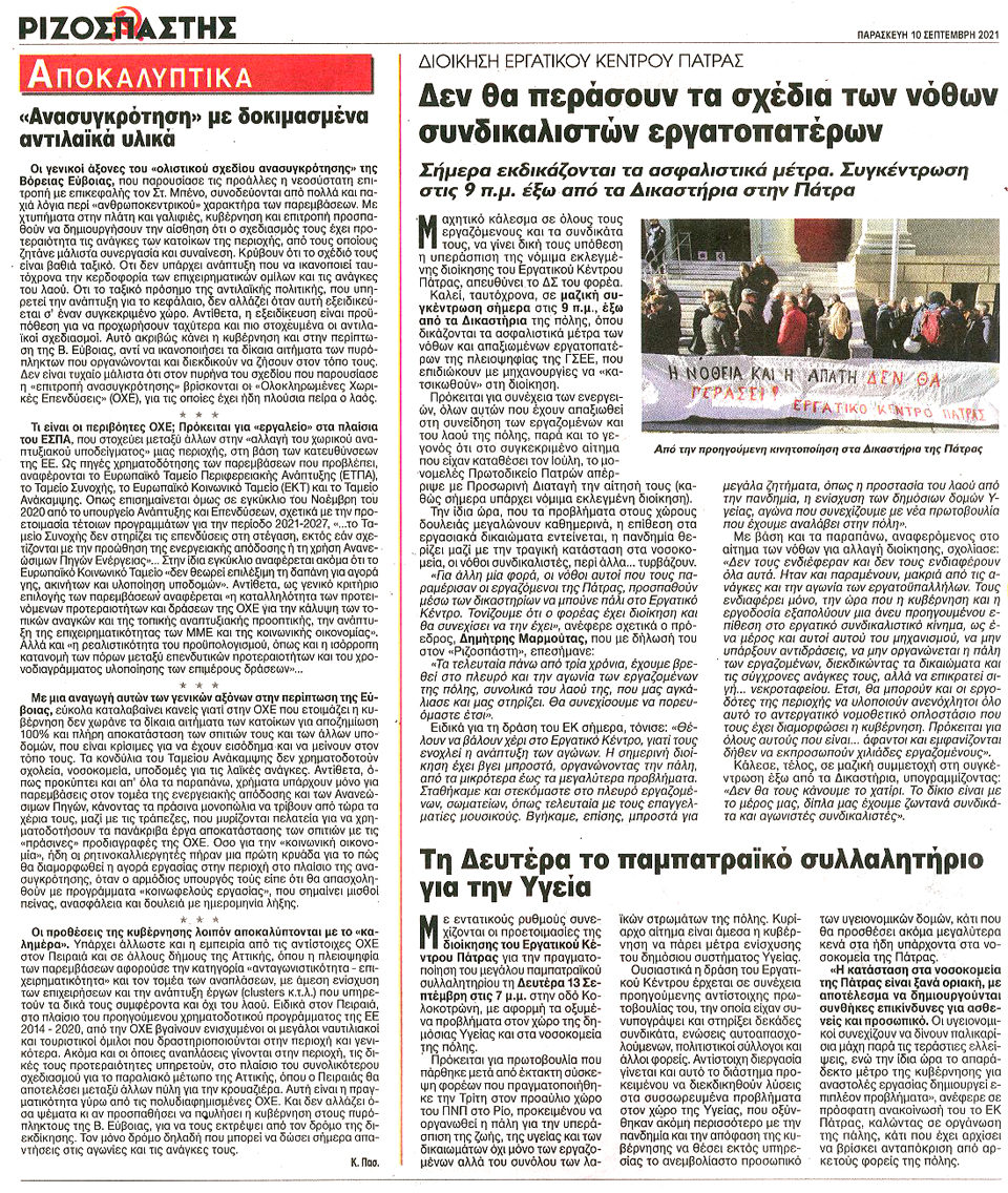 ΡΙΖΟΣΠΑΣΤΗΣ - 10 Σεπτεμβρίου 2021