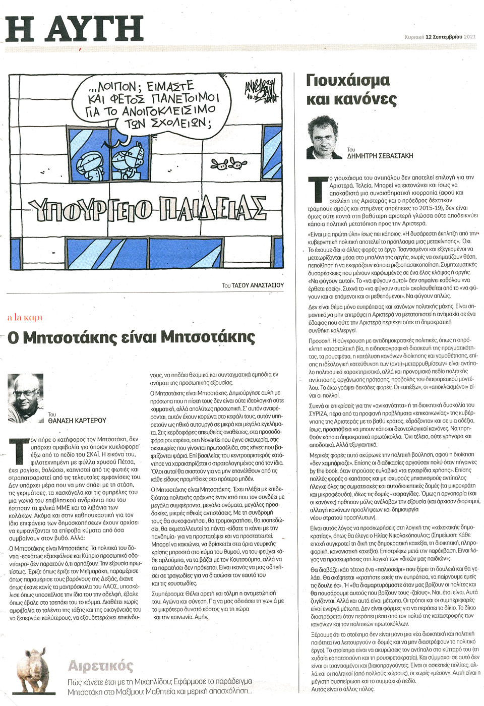Η ΑΥΓΗ ΤΗΣ ΚΥΡΙΑΚΗΣ - 12 Σεπτεμβρίου 2021