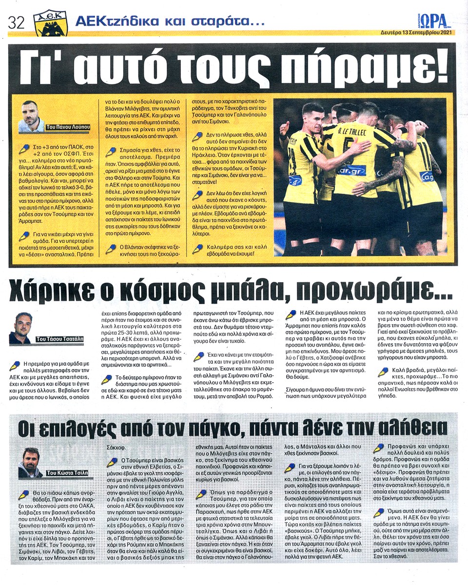 ΑΘΛΗΤΙΚΗ ΩΡΑ ΤΩΝ ΣΠΟΡ - 13 Σεπτεμβρίου 2021