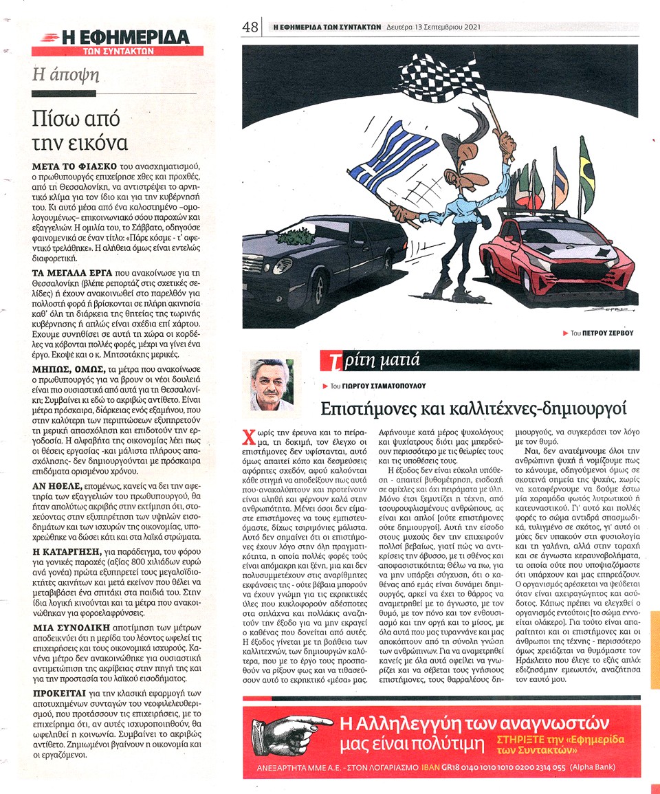 Η ΕΦΗΜΕΡΙΔΑ ΤΩΝ ΣΥΝΤΑΚΤΩΝ - 13 Σεπτεμβρίου 2021