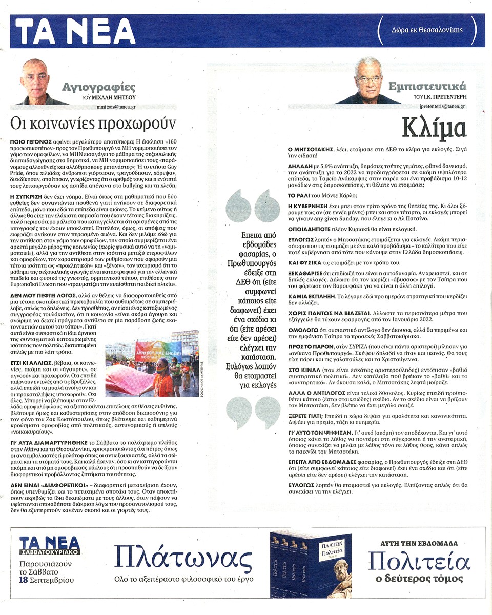 ΤΑ ΝΕΑ - 13 Σεπτεμβρίου 2021