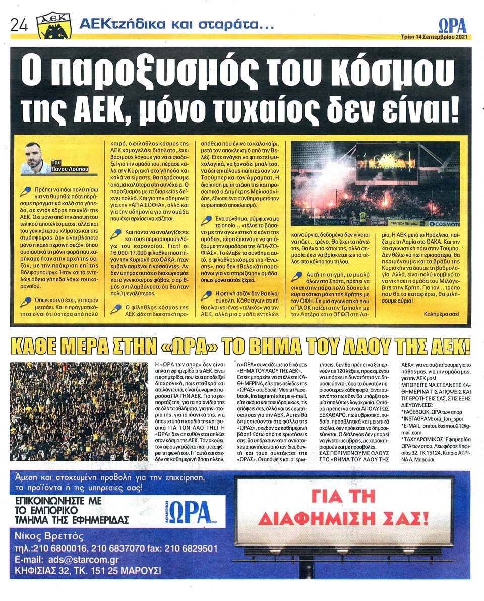 ΑΘΛΗΤΙΚΗ ΩΡΑ ΤΩΝ ΣΠΟΡ - 14 Σεπτεμβρίου 2021