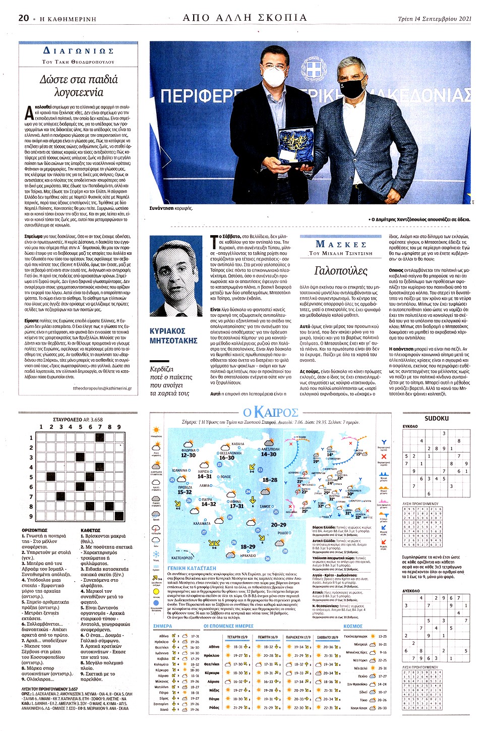 ΚΑΘΗΜΕΡΙΝΗ - 14 Σεπτεμβρίου 2021