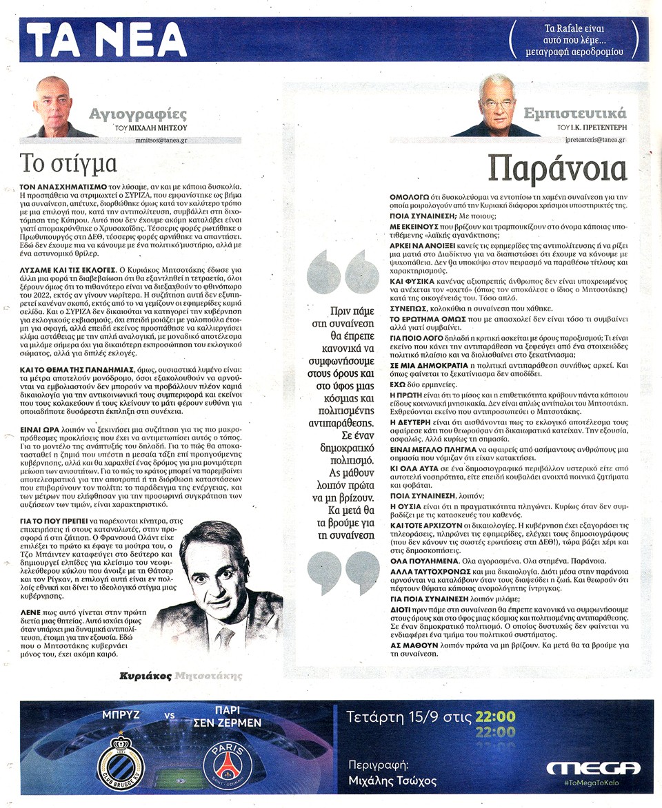 ΤΑ ΝΕΑ - 14 Σεπτεμβρίου 2021