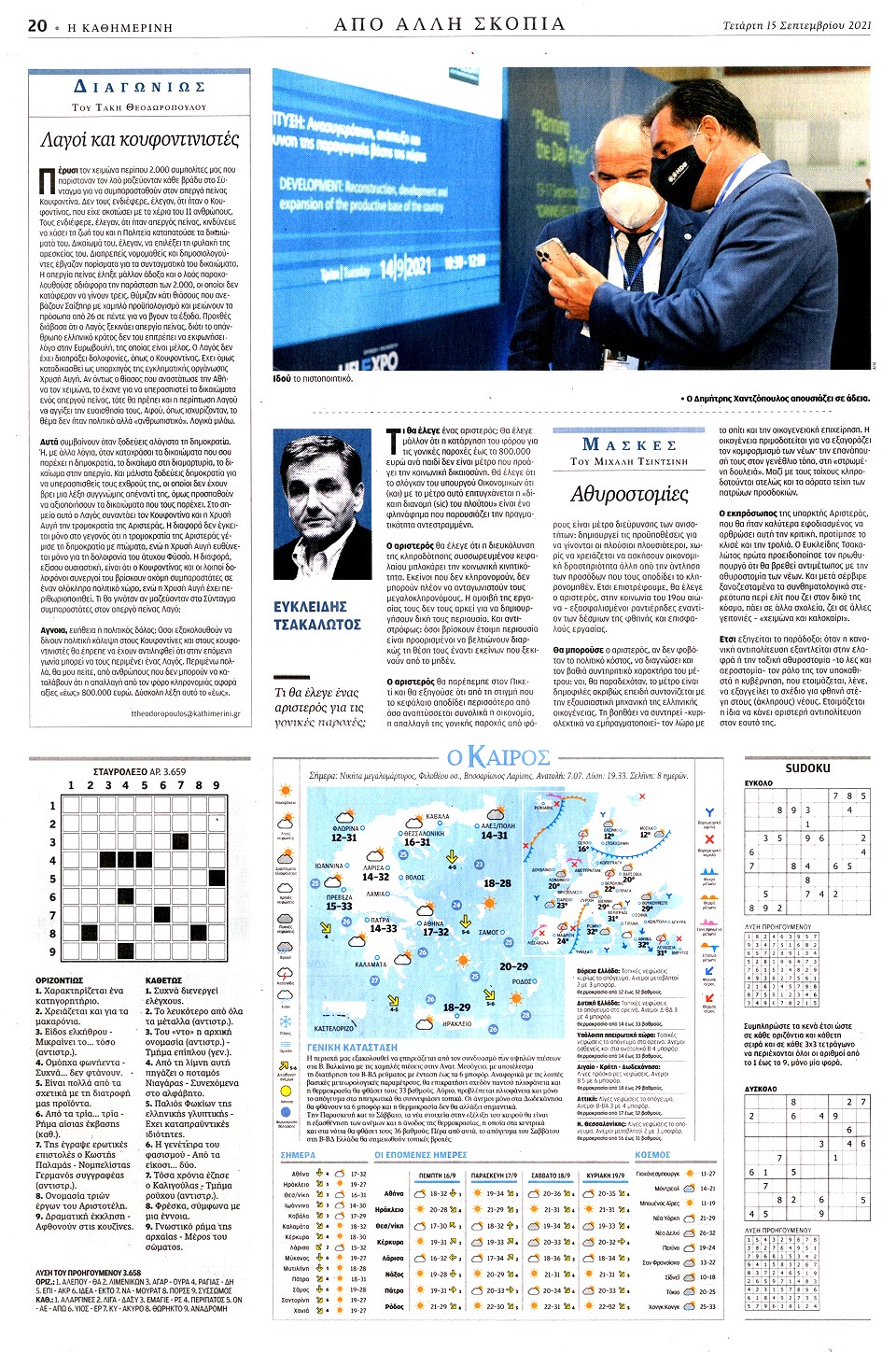 ΚΑΘΗΜΕΡΙΝΗ - 15 Σεπτεμβρίου 2021