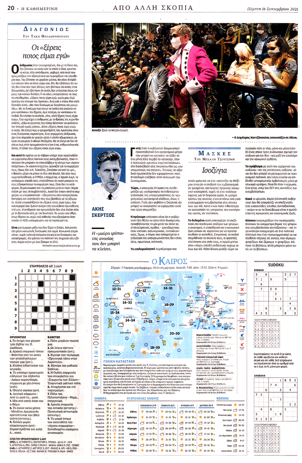 ΚΑΘΗΜΕΡΙΝΗ - 16 Σεπτεμβρίου 2021