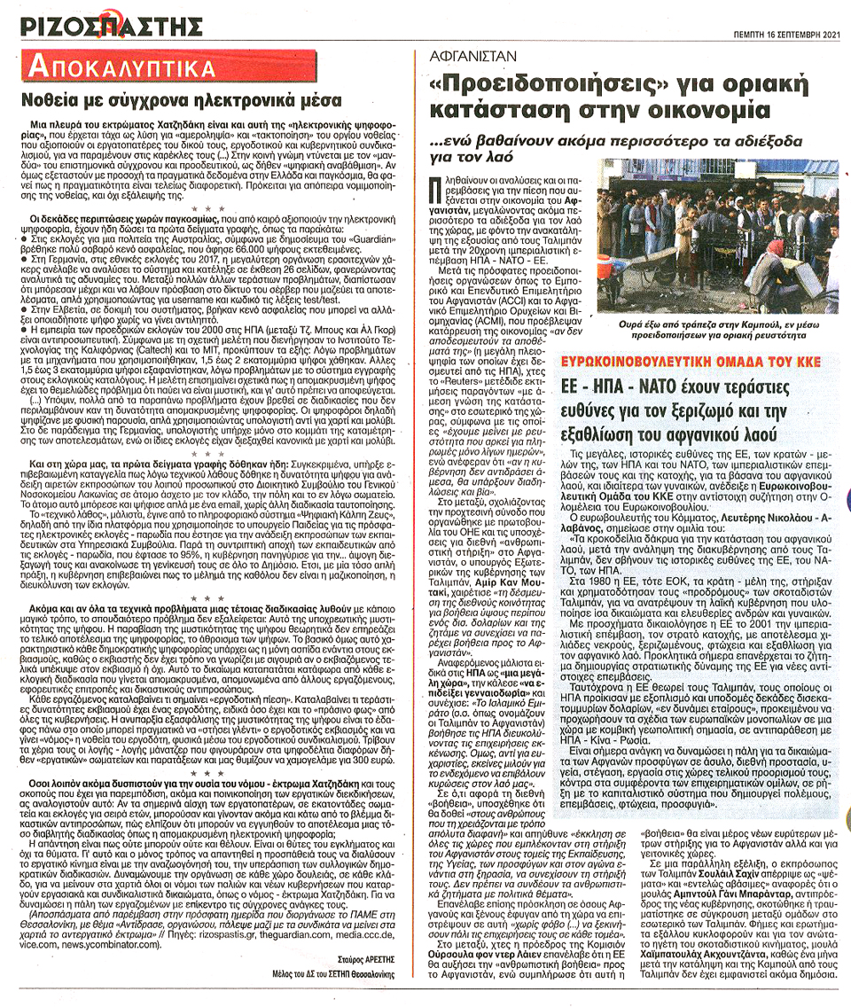 ΡΙΖΟΣΠΑΣΤΗΣ - 16 Σεπτεμβρίου 2021