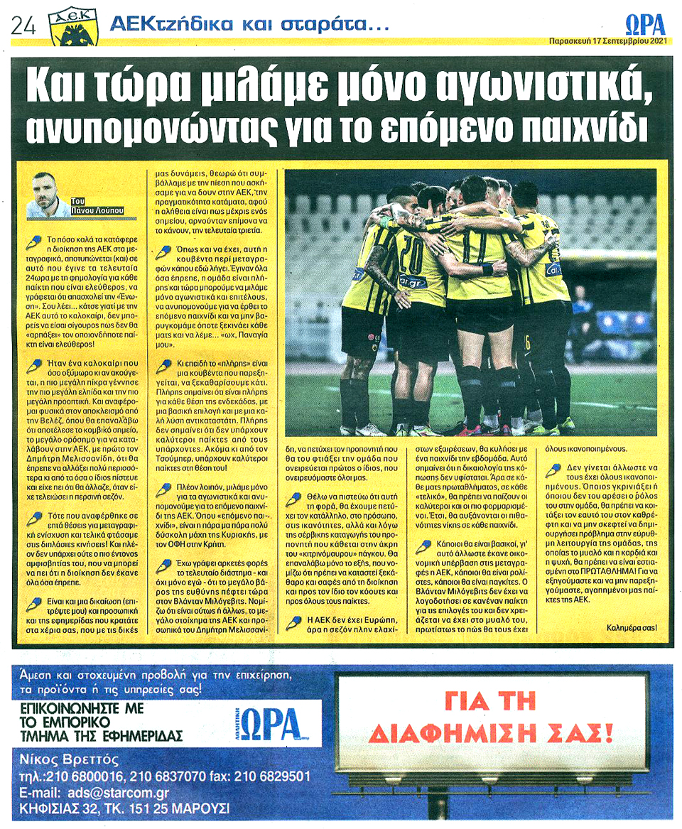 ΑΘΛΗΤΙΚΗ ΩΡΑ ΤΩΝ ΣΠΟΡ - 17 Σεπτεμβρίου 2021