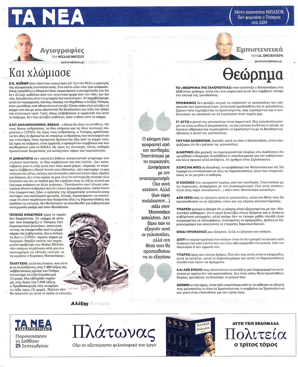 ΤΑ ΝΕΑ - 20 Σεπτεμβρίου 2021