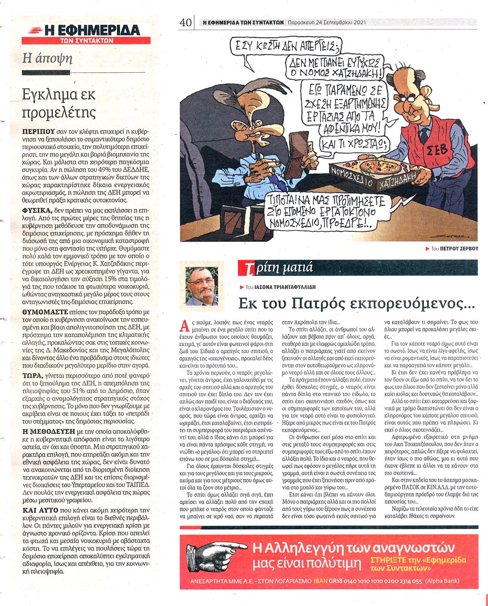 Η ΕΦΗΜΕΡΙΔΑ ΤΩΝ ΣΥΝΤΑΚΤΩΝ - 24 Σεπτεμβρίου 2021
