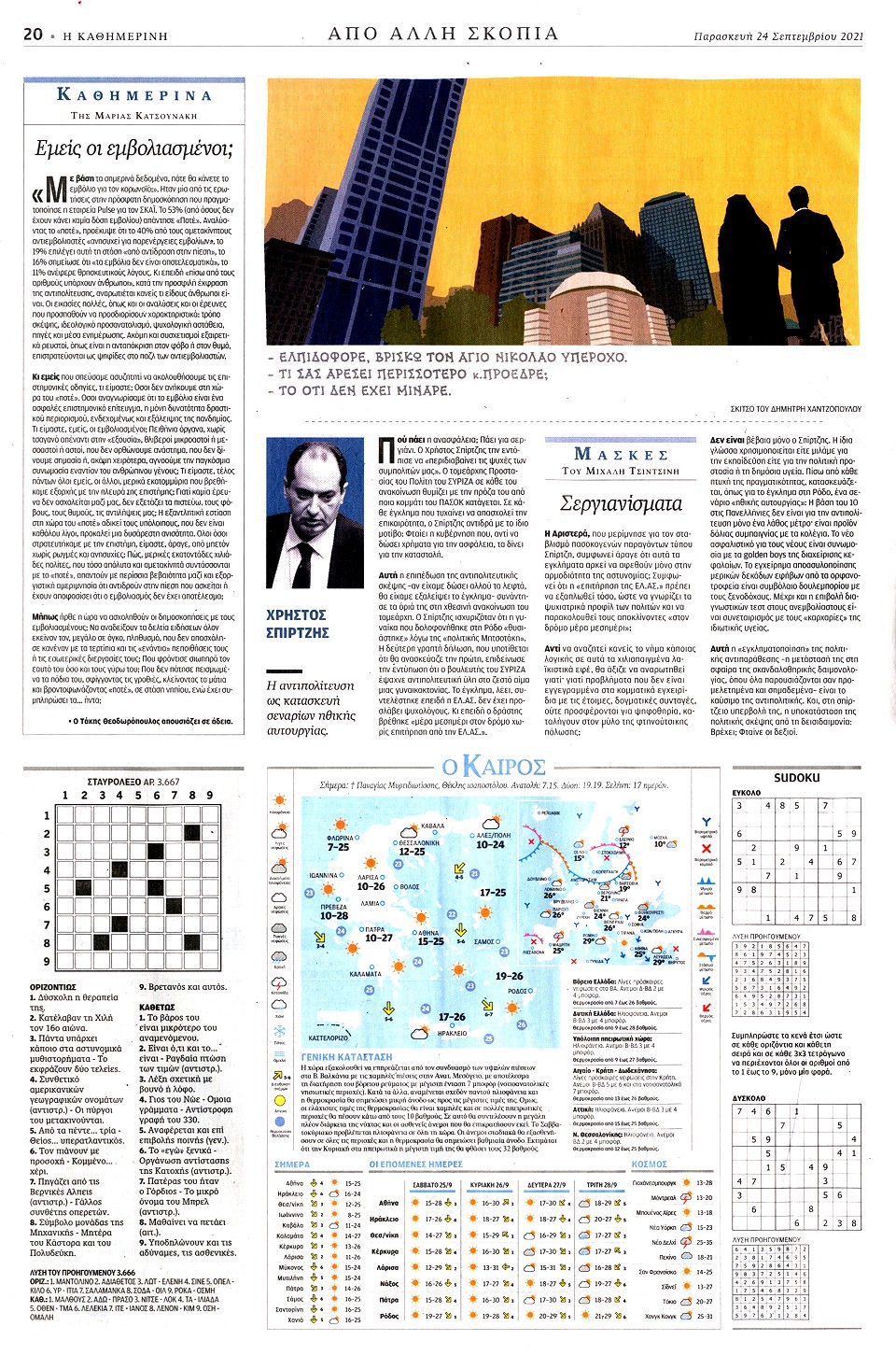 ΚΑΘΗΜΕΡΙΝΗ - 24 Σεπτεμβρίου 2021