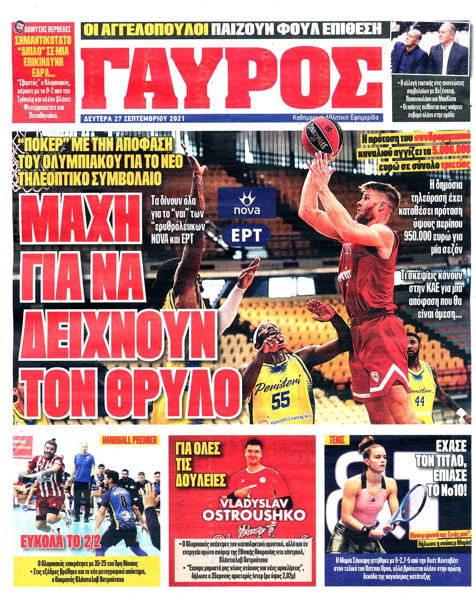 ΠΡΩΤΑΘΛΗΤΗΣ - 27 Σεπτεμβρίου 2021