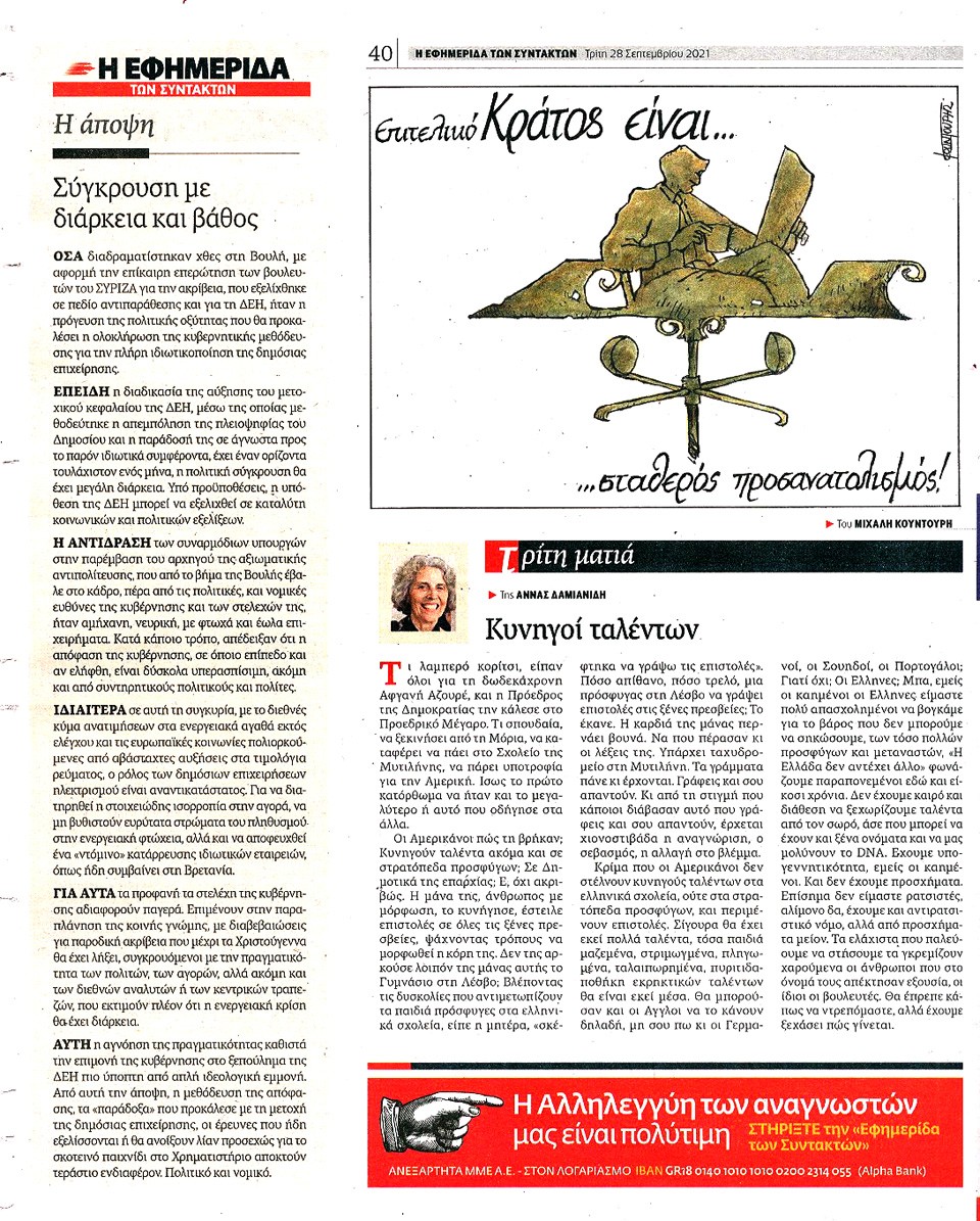 Η ΕΦΗΜΕΡΙΔΑ ΤΩΝ ΣΥΝΤΑΚΤΩΝ - 28 Σεπτεμβρίου 2021
