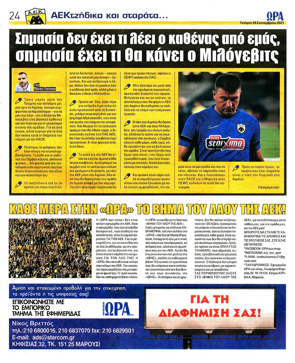 ΑΘΛΗΤΙΚΗ ΩΡΑ ΤΩΝ ΣΠΟΡ - 29 Σεπτεμβρίου 2021