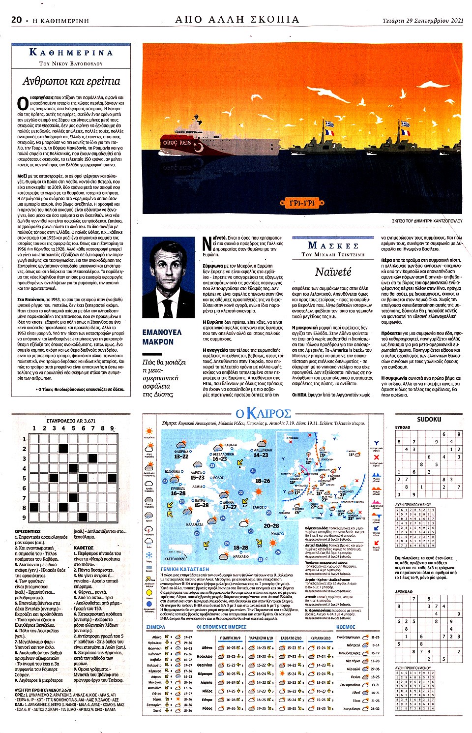 ΚΑΘΗΜΕΡΙΝΗ - 29 Σεπτεμβρίου 2021
