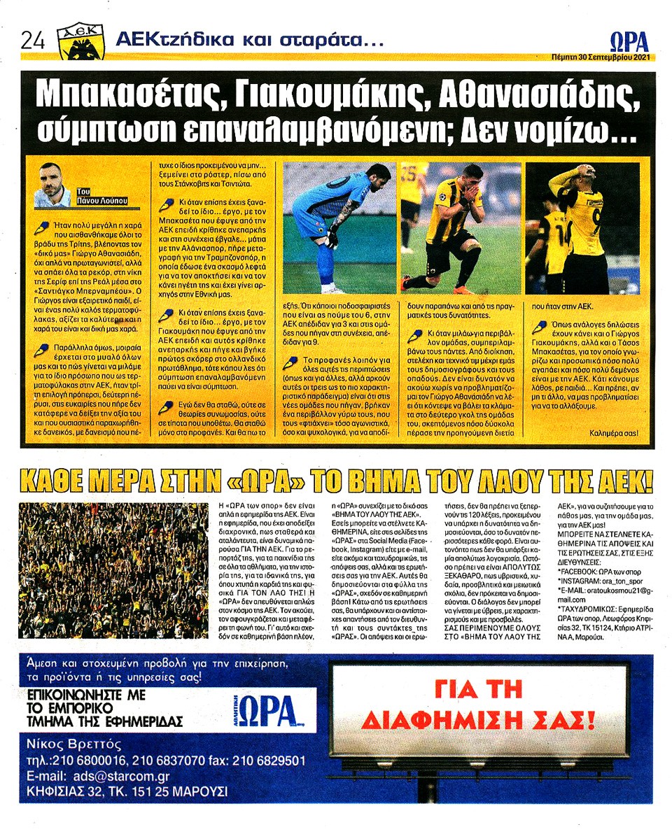 ΑΘΛΗΤΙΚΗ ΩΡΑ ΤΩΝ ΣΠΟΡ - 30 Σεπτεμβρίου 2021