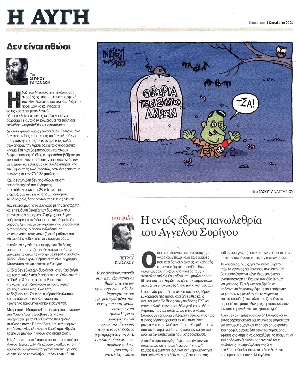 Η ΑΥΓΗ - 1 Οκτωβρίου 2021