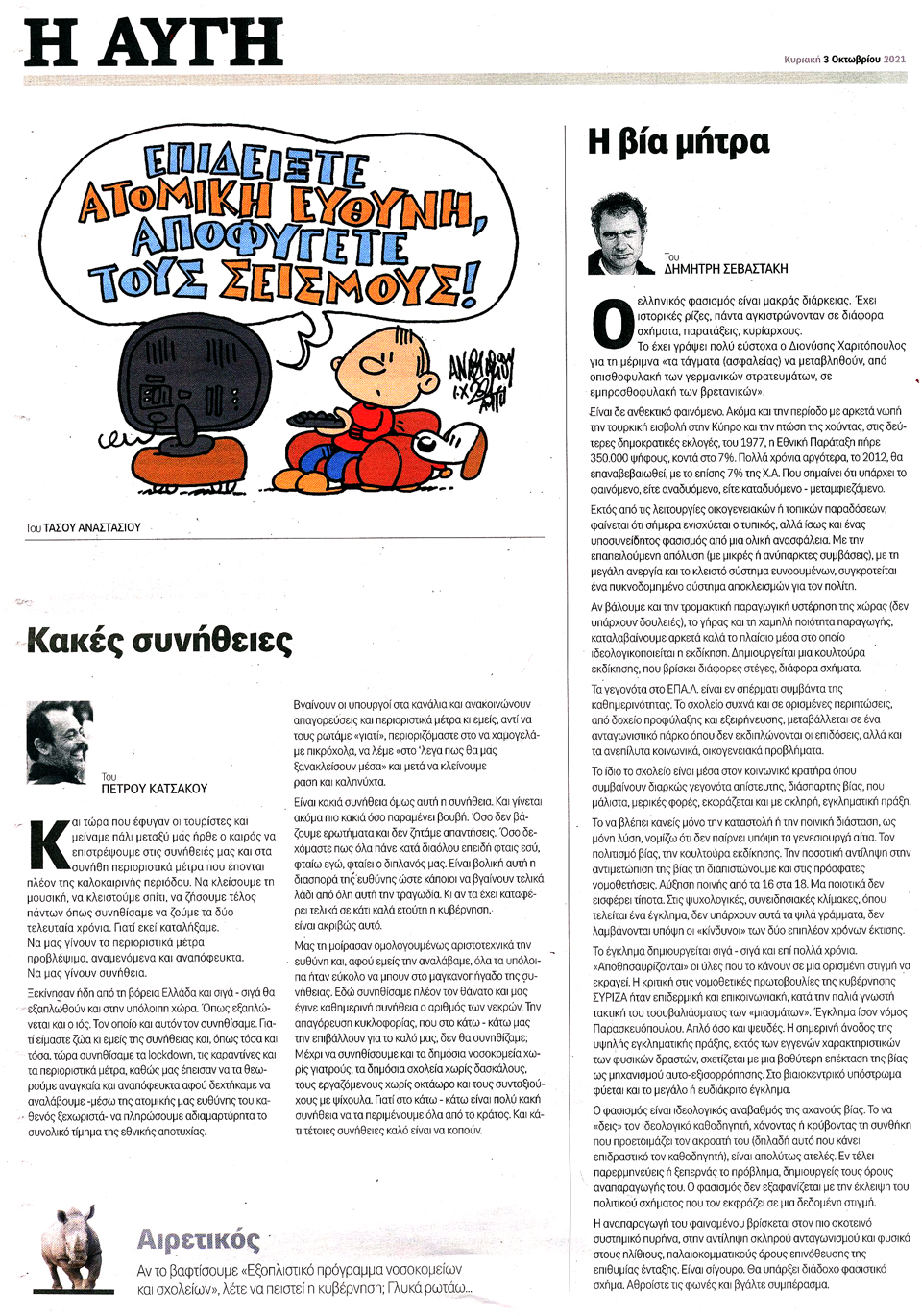 Η ΑΥΓΗ ΤΗΣ ΚΥΡΙΑΚΗΣ - 3 Οκτωβρίου 2021