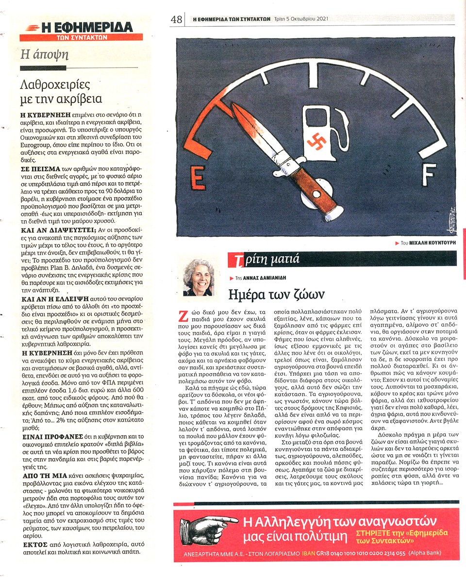 Η ΕΦΗΜΕΡΙΔΑ ΤΩΝ ΣΥΝΤΑΚΤΩΝ - 5 Οκτωβρίου 2021