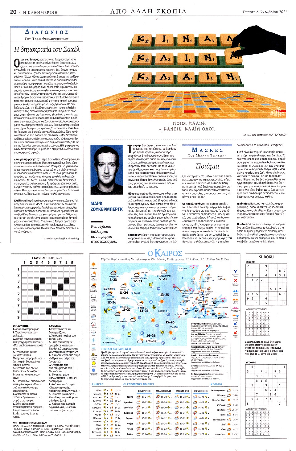 ΚΑΘΗΜΕΡΙΝΗ - 6 Οκτωβρίου 2021