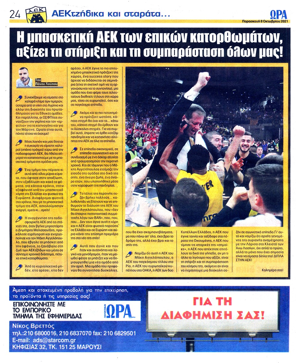 ΑΘΛΗΤΙΚΗ ΩΡΑ ΤΩΝ ΣΠΟΡ - 8 Οκτωβρίου 2021