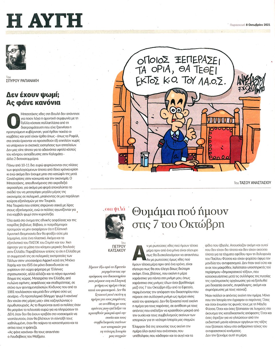 Η ΑΥΓΗ - 8 Οκτωβρίου 2021
