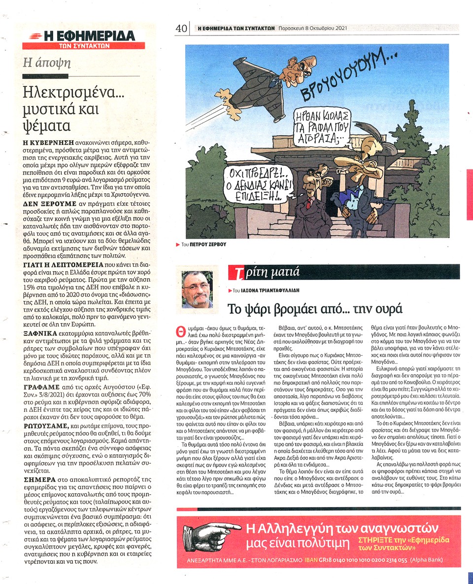 Η ΕΦΗΜΕΡΙΔΑ ΤΩΝ ΣΥΝΤΑΚΤΩΝ - 8 Οκτωβρίου 2021