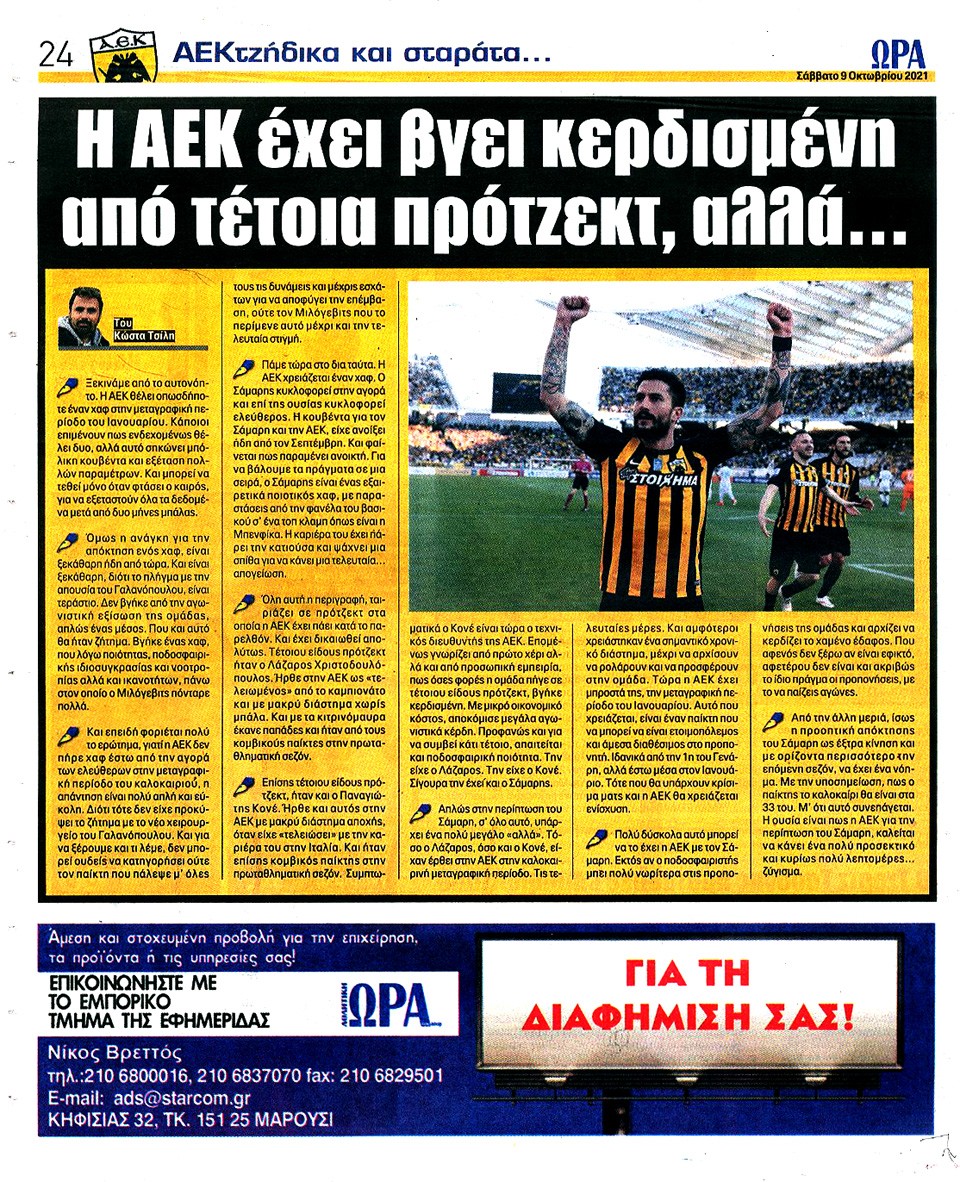 ΑΘΛΗΤΙΚΗ ΩΡΑ ΤΩΝ ΣΠΟΡ - 9 Οκτωβρίου 2021