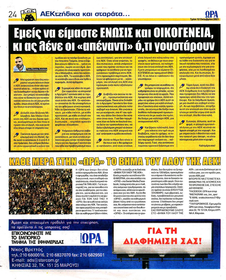 ΑΘΛΗΤΙΚΗ ΩΡΑ ΤΩΝ ΣΠΟΡ - 12 Οκτωβρίου 2021