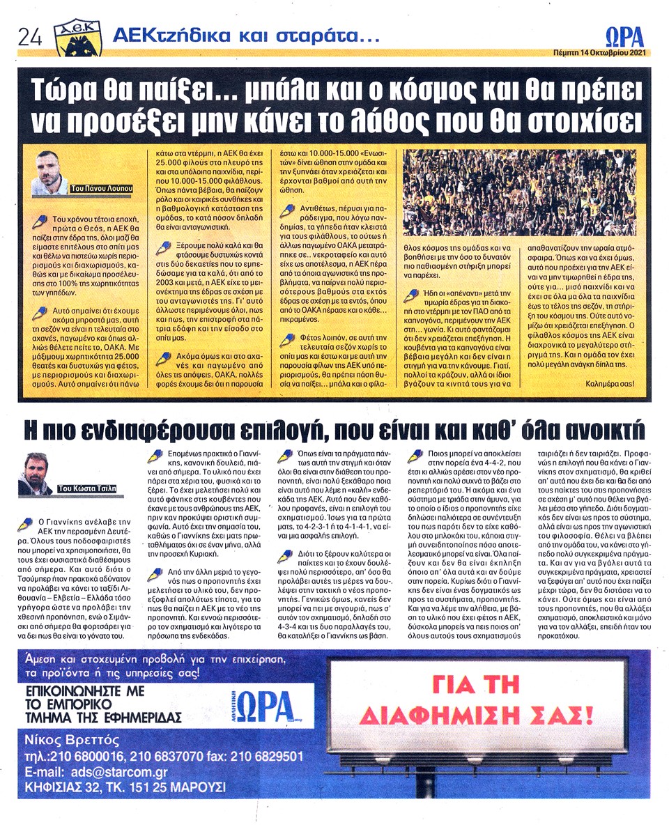 ΑΘΛΗΤΙΚΗ ΩΡΑ ΤΩΝ ΣΠΟΡ - 14 Οκτωβρίου 2021