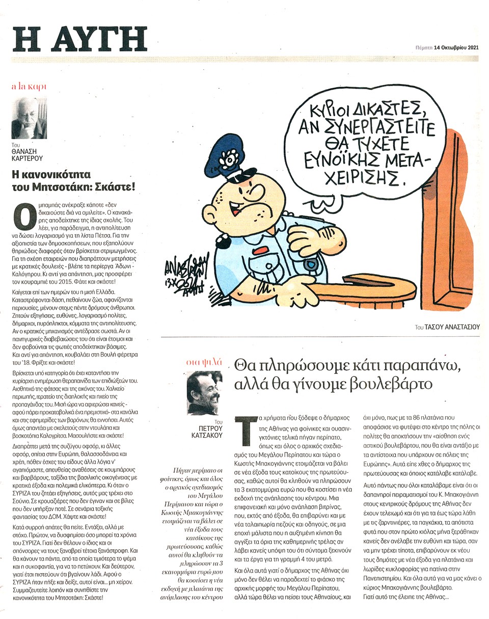 Η ΑΥΓΗ - 14 Οκτωβρίου 2021