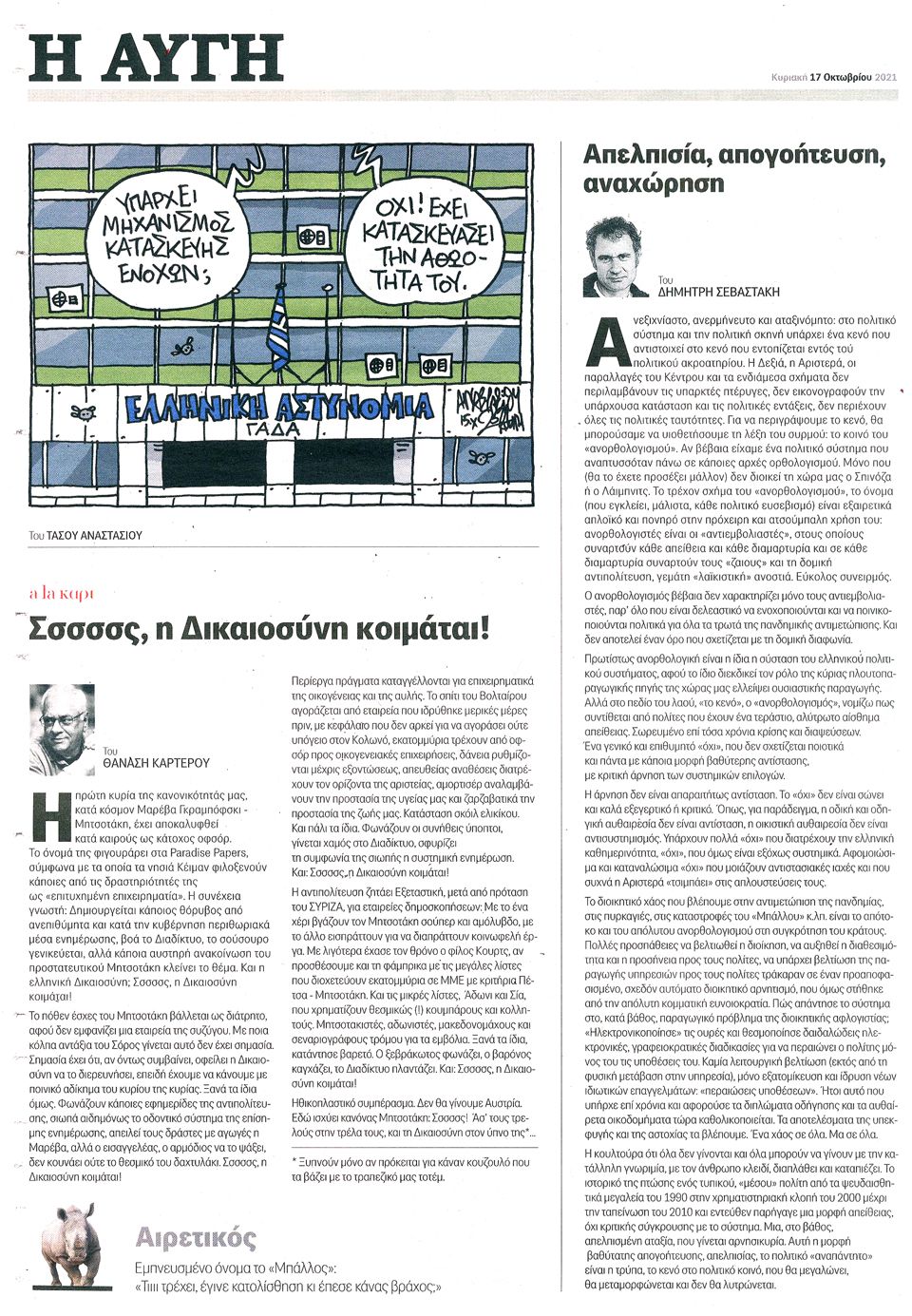 Η ΑΥΓΗ ΤΗΣ ΚΥΡΙΑΚΗΣ - 17 Οκτωβρίου 2021