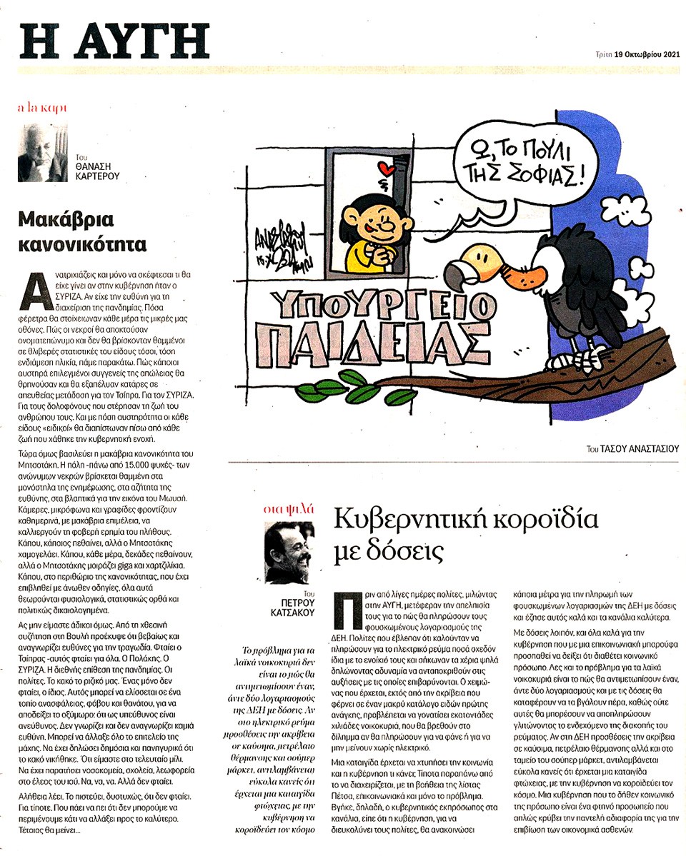Η ΑΥΓΗ - 19 Οκτωβρίου 2021