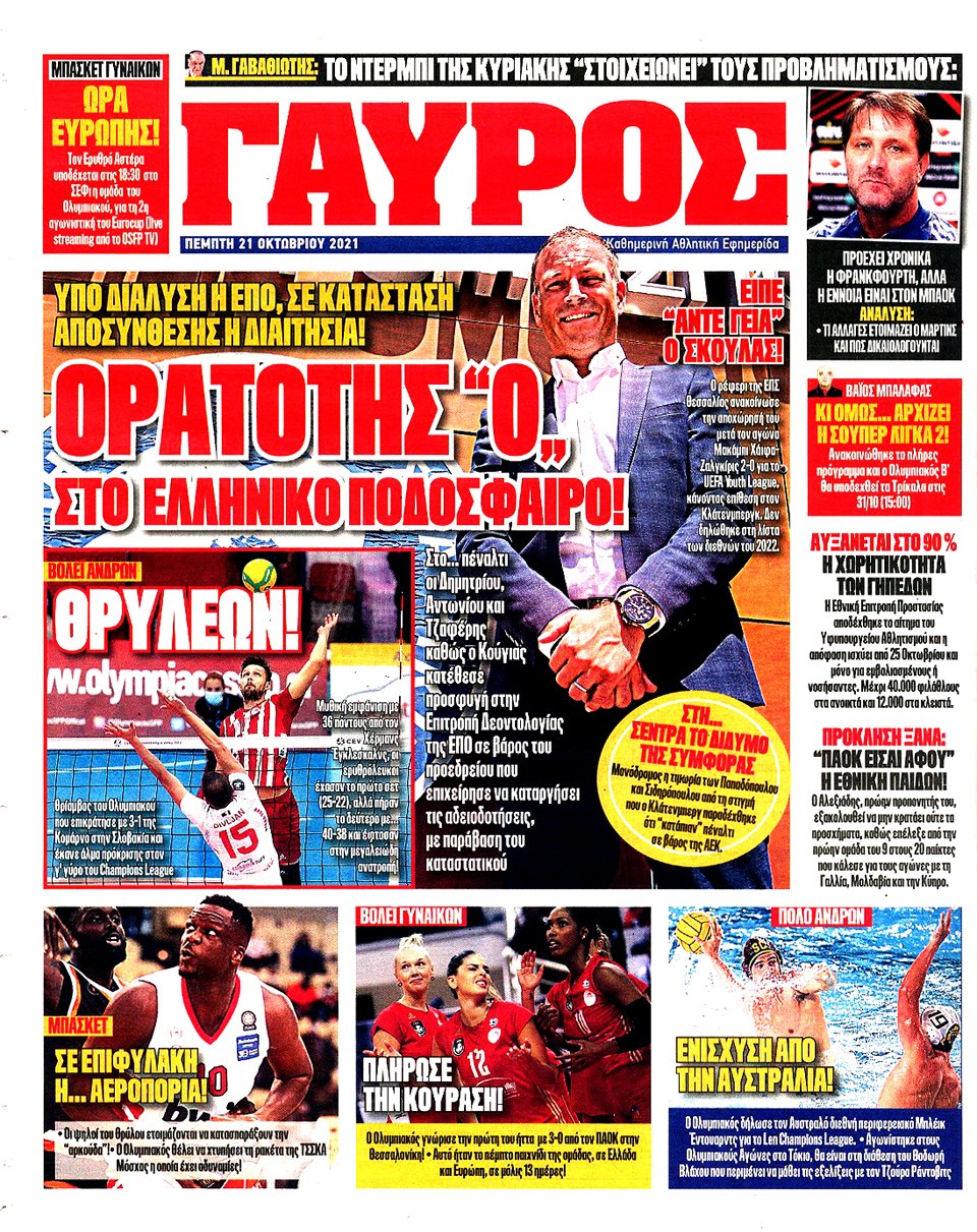 ΠΡΩΤΑΘΛΗΤΗΣ - 21 Οκτωβρίου 2021
