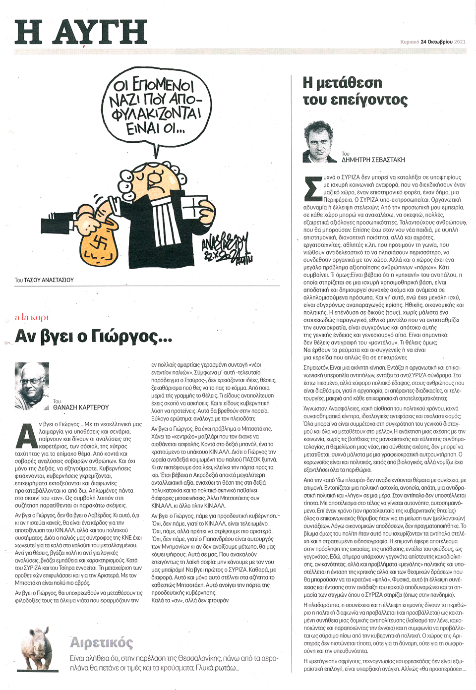 Η ΑΥΓΗ ΤΗΣ ΚΥΡΙΑΚΗΣ - 24 Οκτωβρίου 2021